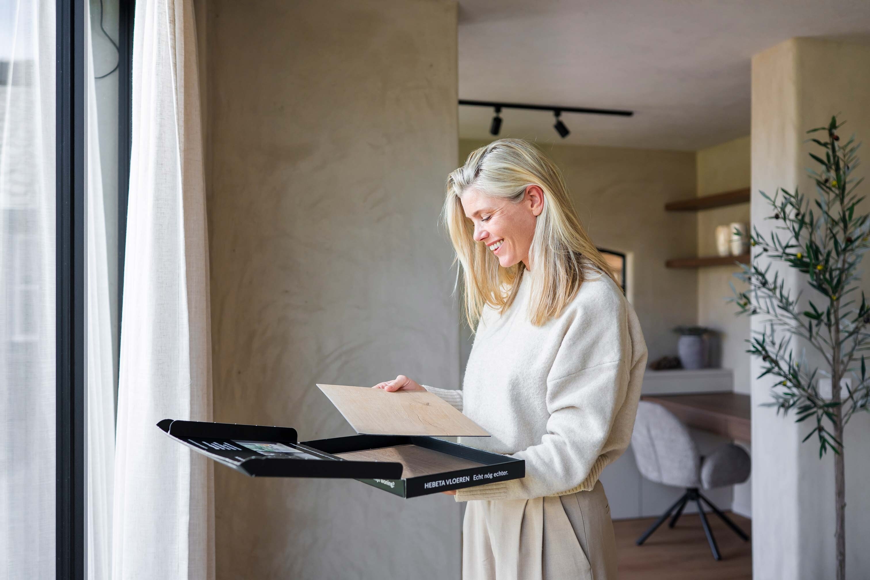 Een lichte houtlook brengt zachtheid en een natuurlijke toon in de ruimte. Een lichte betonlook geeft een rustige, moderne basis. Je ziet meteen hoe het licht speels over het oppervlak glijdt, zonder harde schaduwen of onderbrekingen. Voor huishoudens die warmte willen zonder drukte, werkt dit vaak prachtig.