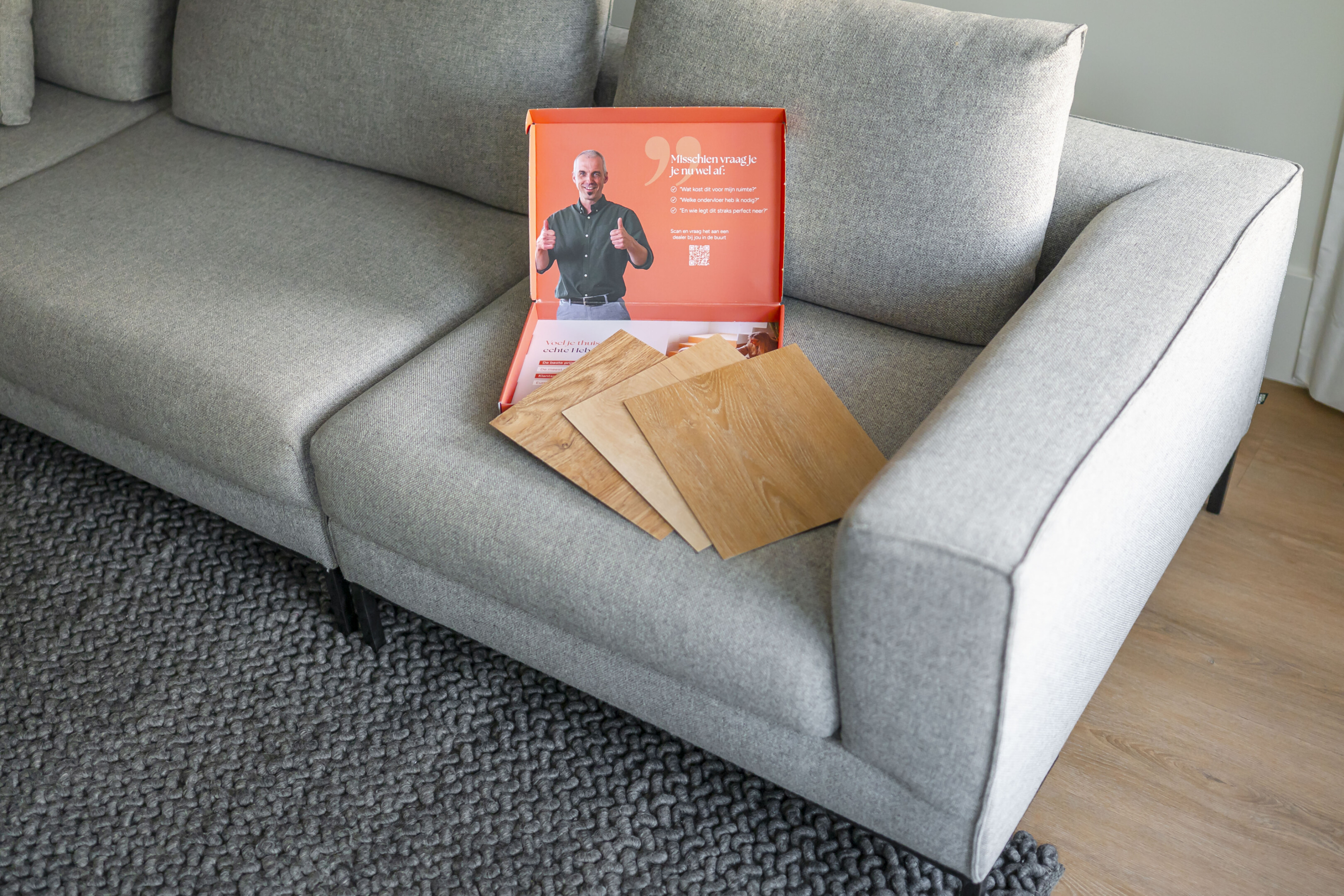 Wat dit project extra herkenbaar maakt, is de manier waarop de keuze is gemaakt. De bewoners hebben eerst meerdere vloerstalen aangevraagd om thuis te vergelijken. Dat is een logische stap.