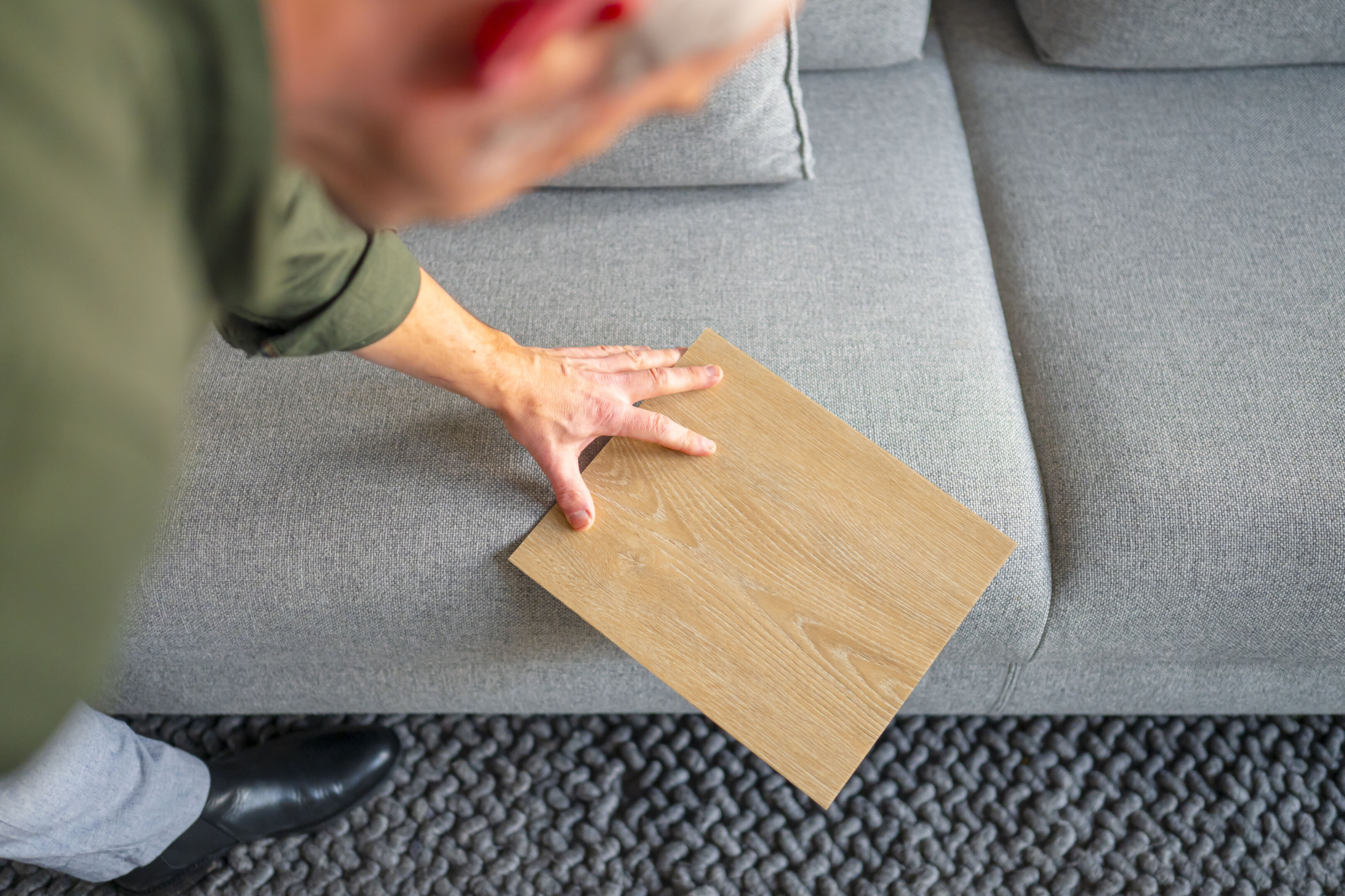 Een Charente PVC-vloer ziet er in een showroom anders uit dan in je eigen woning. Daglicht, wandkleur, meubels en accessoires hebben allemaal invloed op hoe een vloer overkomt. Leg je een staal op de plek waar de vloer straks komt te liggen, dan wordt het verschil veel sneller zichtbaar.