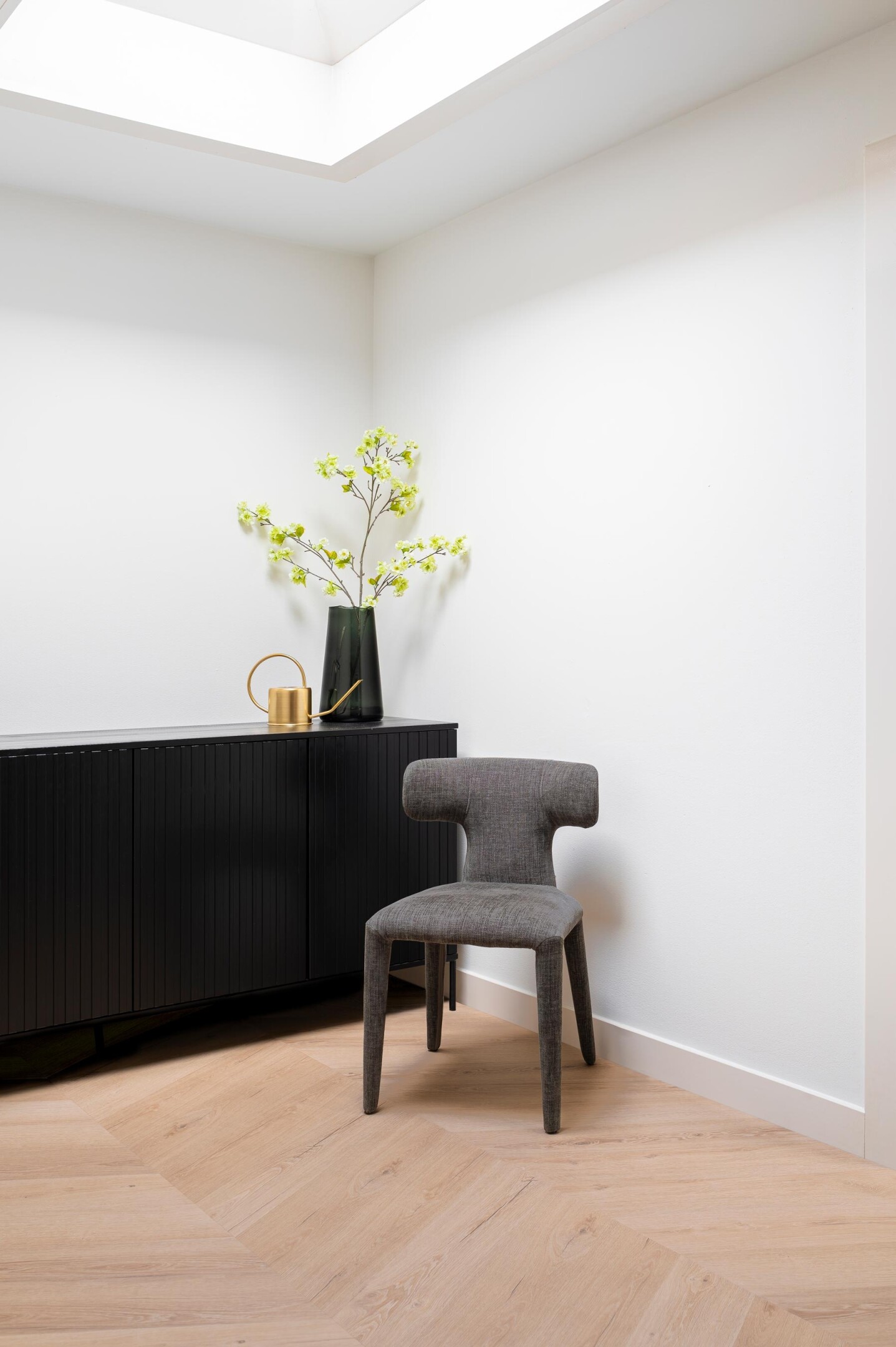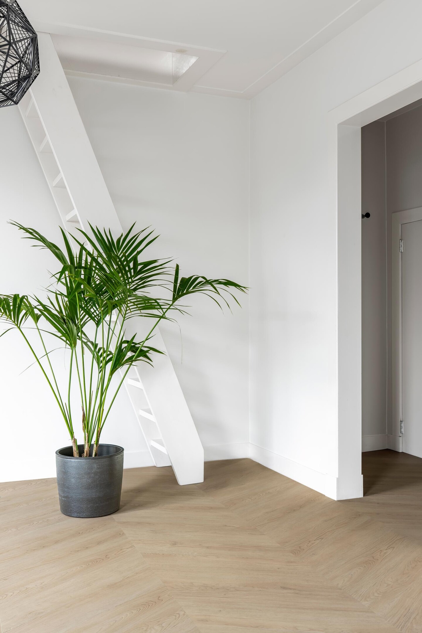 Dat verschil merk je niet alleen in de vloer, maar in de hele ruimte. Een visgraatvloer brengt meer dynamiek. De Hongaarse punt geeft meer symmetrie en laat een ruimte vaak kalmer ogen.