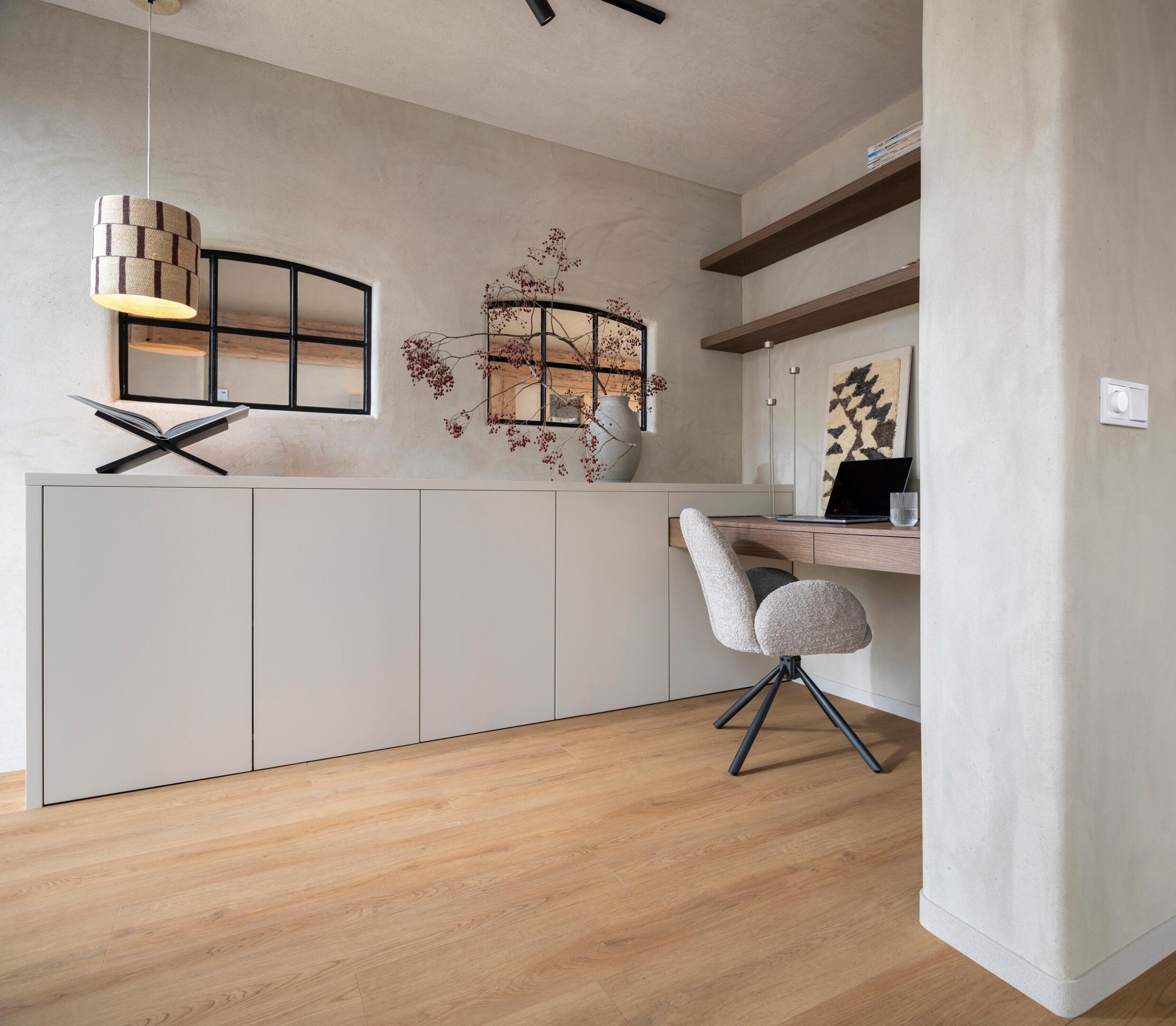 - Een lichte vloer maakt de kamer helder en open. Het daglicht beweegt dieper de ruimte in en de wanden lijken verder weg te staan. Dat geeft lucht en focus, vooral wanneer je veel achter je scherm werkt.