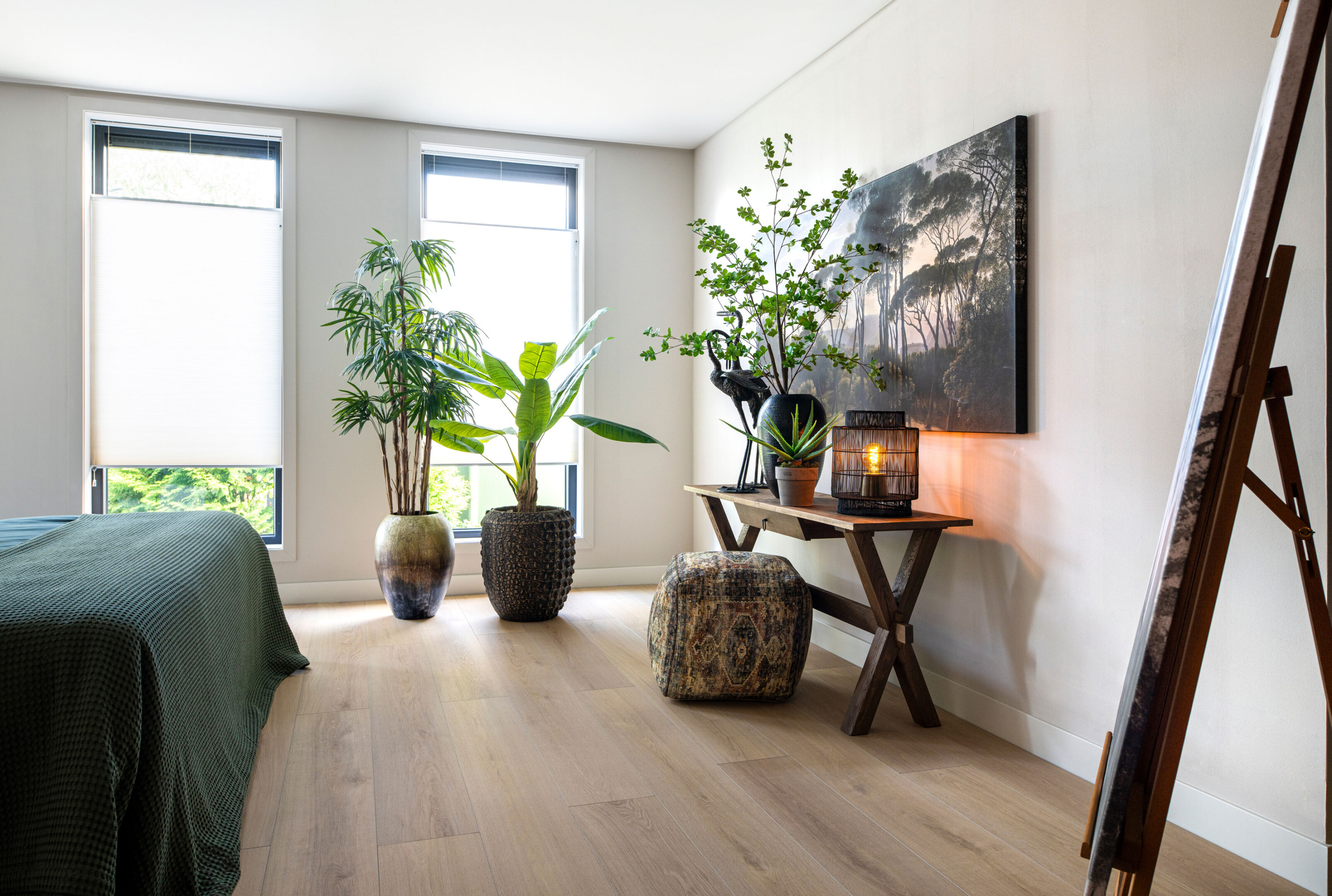 Voor deze stijl past een PVC-vloer met een lichte houtlook perfect. Denk aan een naturel eikenhout look die de ruimte een frisse uitstraling geeft. Een eco PVC-vloer in een lichte houttint biedt het natuurlijke gevoel die perfect bij deze stijl past. Een mooie milieuvriendelijke keuze die goed aansluit bij een minimalistisch en duurzaam karakter van de Scandi Japandi stijl.